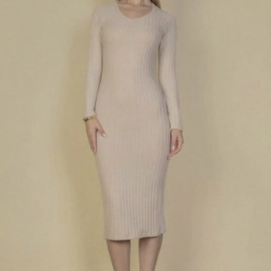 - Sweater-Knit Fuzzy V Neck Bodycon Dress