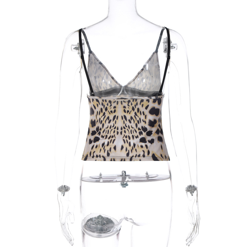 Women Clothing Summer Sexy Leopard Print Slim Backless Strap Tube Top